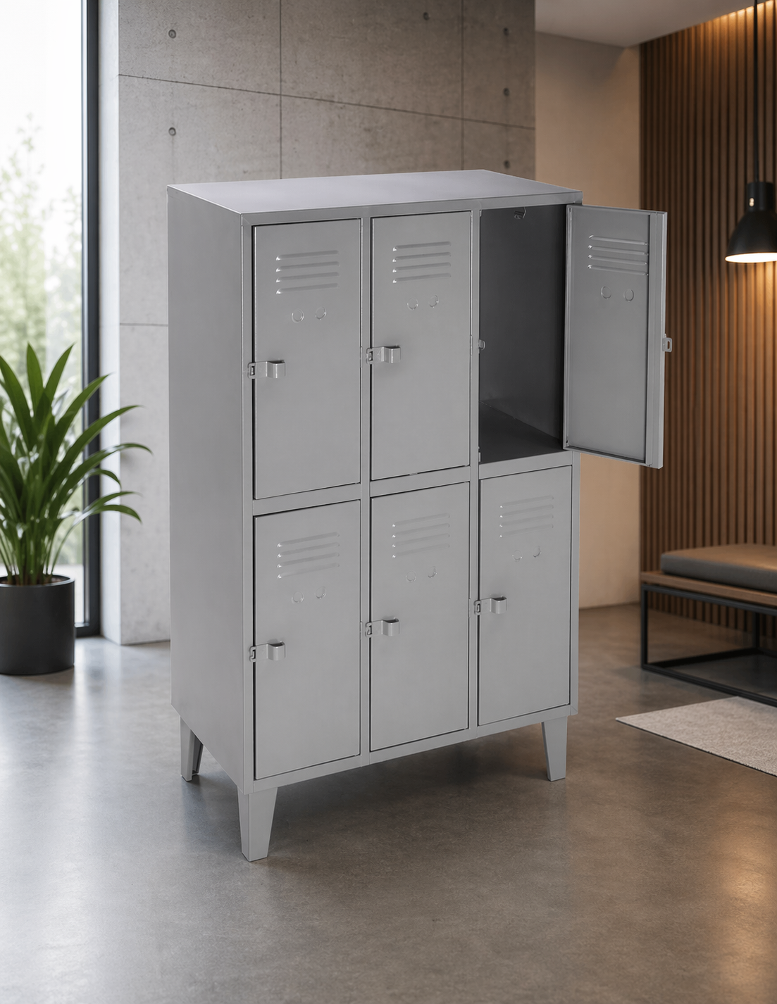 La mejor solución para mantener el orden y la seguridad en espacios compartidos. Ideal para empresas, oficinas, bodegas, colegios, gimnasios y camarines. Fabricado en acero resistente, con 6 compartimentos independientes para uso personal o laboral.