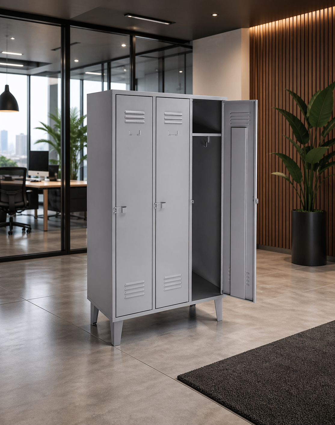 La combinación perfecta de capacidad, orden y resistencia para espacios laborales y compartidos. Ideal para empresas, oficinas, bodegas, colegios, gimnasios y camarines que buscan almacenamiento seguro y funcional. Fabricado en acero resistente, con 3 compartimentos independientes de amplio espacio interior.