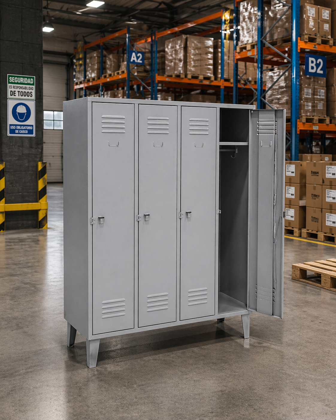 Mayor capacidad, resistencia y organización para espacios de trabajo compartidos. Ideal para empresas, oficinas, bodegas, colegios, gimnasios y camarines que necesitan almacenamiento seguro y funcional. Fabricado en acero resistente, con 4 compartimentos independientes de amplio espacio interior.