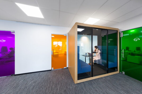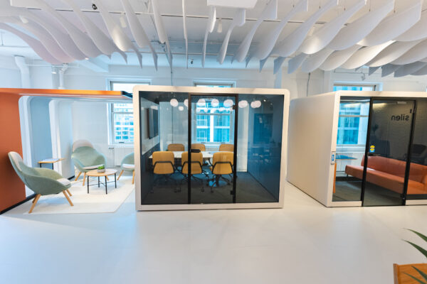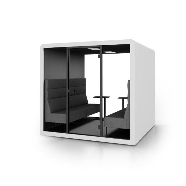 La cabina Space 4 es un espacio insonorizado innovador diseñado para proporcionar privacidad y productividad a un grupo de hasta 8 personas. Ideal para realizar llamadas, reuniones, brainstorming o para trabajar en un entorno tranquilo, incluso por un tiempo prolongado, Space 4 se destaca por su diseño moderno y elegante que se adapta perfectamente a cualquier espacio de trabajo con dimensiones de 240*242*229 cm. Con la capacidad de aislar ruidos externos en 41 dB, esta cabina crea un ambiente libre de distracciones, lo que la convierte en una herramienta esencial para maximizar la productividad. También se caracteriza por aislar el sonido en 32 dB desde el interior al exterior, lo que asegura un espacio de privacidad a los usuarios. Además, es altamente móvil, ya que está equipada con ruedas que facilitan su reubicación en cualquier momento. Su sistema de ventilación eficiente asegura que el aire se mantenga fresco durante su uso, ofreciendo comodidad incluso en sesiones prolongadas de trabajo. Aislamiento: Bloquea 41 dB del ruido exterior y disminuye 30 dB desde el interior hacia afuera Ventilación: El silencioso sistema de ventilación de las cabinas acústicas Silen Space garantiza una constante circulación del aire durante el periodo de uso de la cabina (el detector de presencia optimiza el consumo de energía). El flujo de aire circula a una velocidad superior a 125L/S. Iluminación: Luces LED con sensor de movimiento, de bajo consumo (40 W, 4.000 K, 900lm) Dimmer: Para regular la velocidad de ventilación y la intensidad de la iluminación Enchufe: AC (110-240V) + 1 USB A opcional Soluciones Antibacterianas: Las soluciones antibacterianas incluyen laminados exteriores, manijas de puertas, tableros de mesa e incluso telas para muebles Certificación Carbono Neutral.