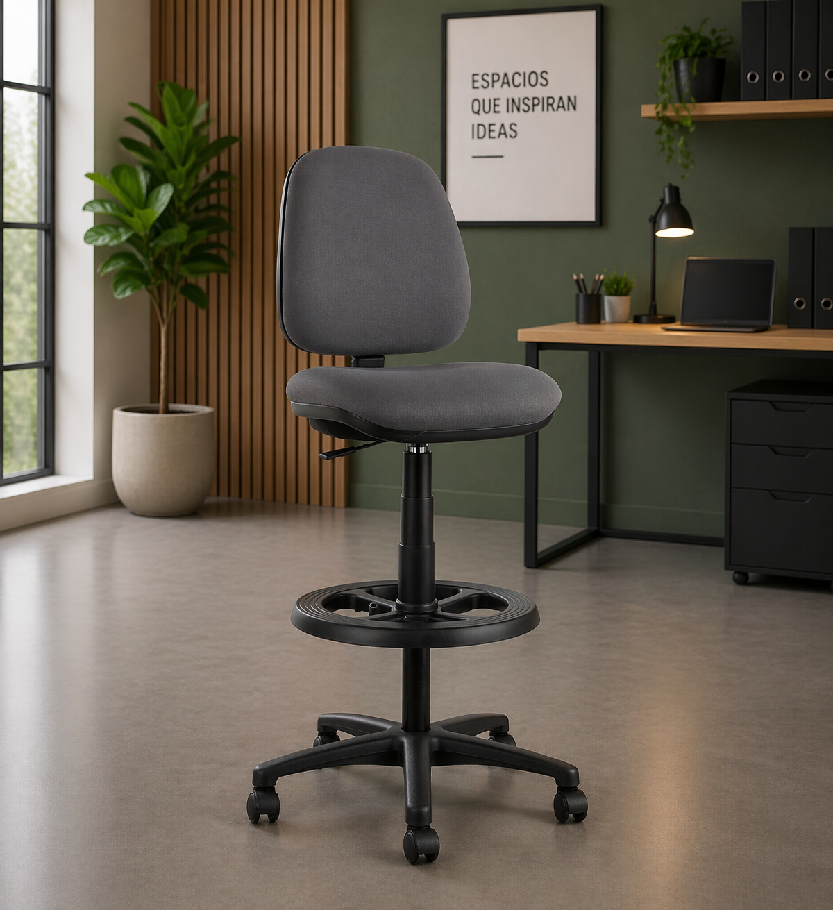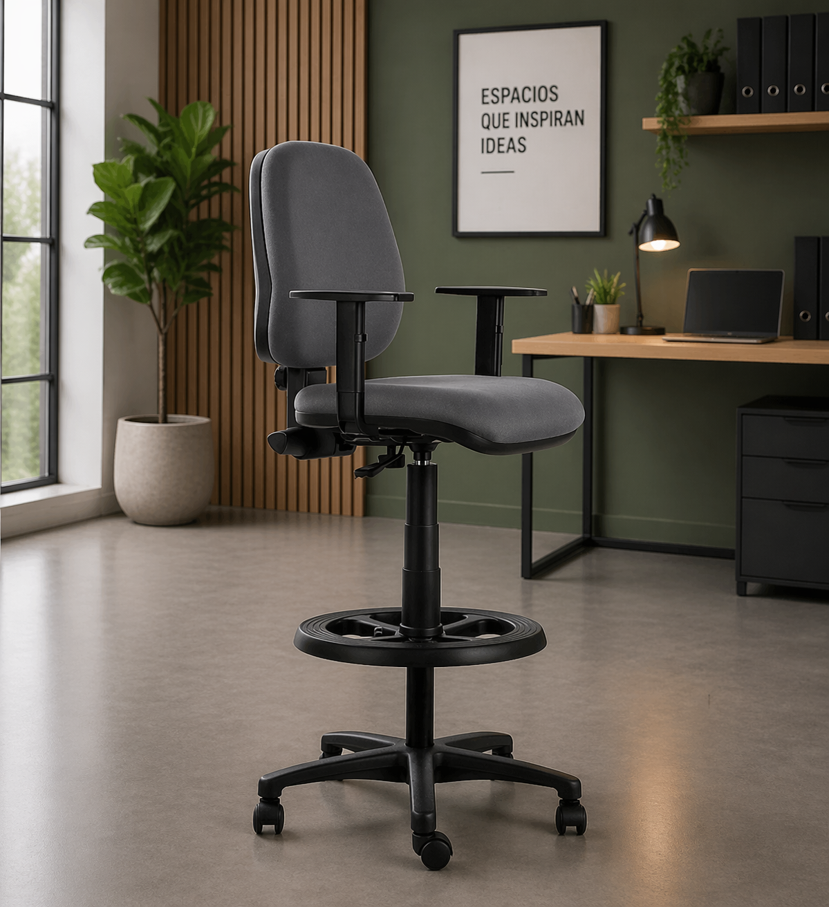 La silla Alexander BR Cajero entrega comodidad, soporte y funcionalidad para puestos de trabajo elevados, siendo ideal para cajas, recepciones, mostradores, laboratorios y áreas operativas.