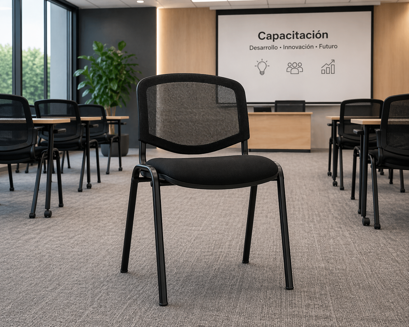 Diseño práctico y moderno pensado para espacios dinámicos y de alto uso. La Silla Isonet combina comodidad, resistencia y una estética profesional, ideal para oficinas, salas de espera, capacitaciones, reuniones o instituciones. Su respaldo en malla favorece la ventilación y su estructura firme asegura durabilidad.